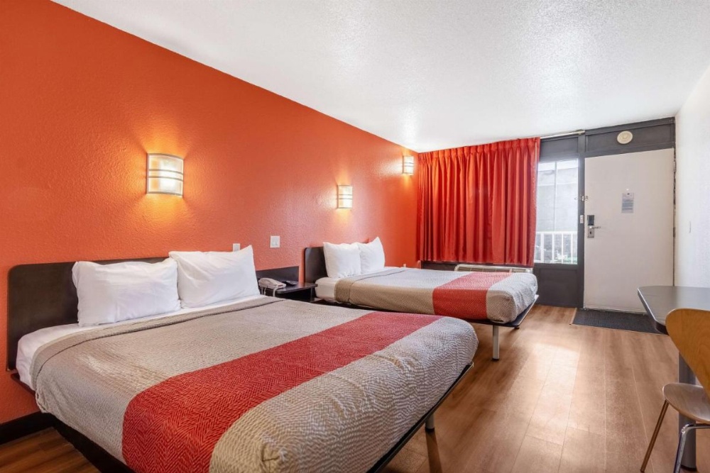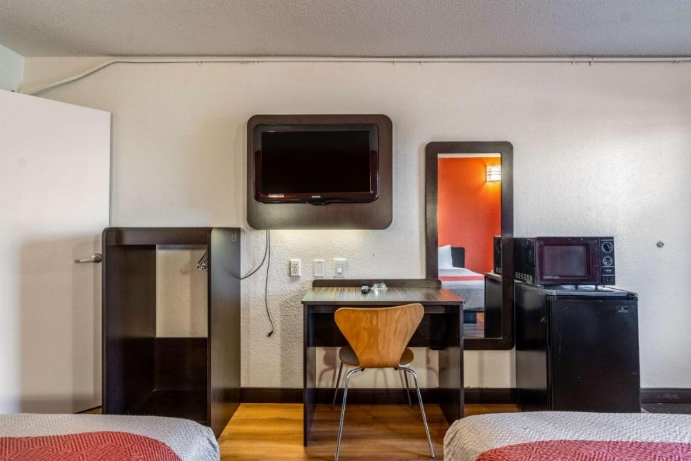 This room features a flat-screen cable TV, microwave and compact refrigerator.